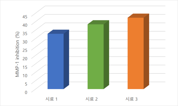 - Characteristic : As all components are made of natural substances, side effects such as skin irritation and carcinogenicity of synthetic antioxidants are not generated. Moreover, when ultraviolet rays, one of the main causes of skin aging, are irradiated, cytotoxicity caused by ultraviolet rays can be alleviated. In addition, the collagen-degrading enzyme MMP (Matrix metalloproteinase) is promoted by ultraviolet irradiation, but the extract according to this invention can significantly inhibit the expression of MMP, thereby effectively preventing collagen decomposition, improving skin elasticity and suppressing aging progression.