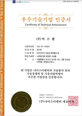 우수기술기업 인증서